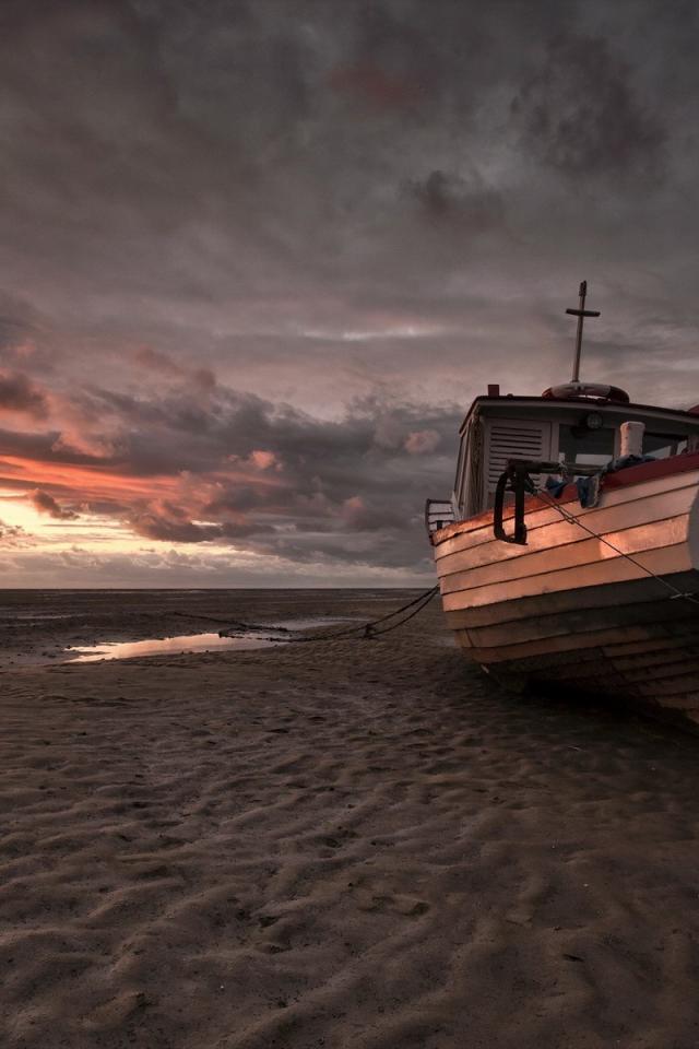 Wallpaper Boat on the beach sand at low tide
