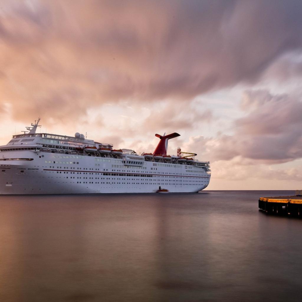 Wallpaper Cruise ship on the background of pink clouds