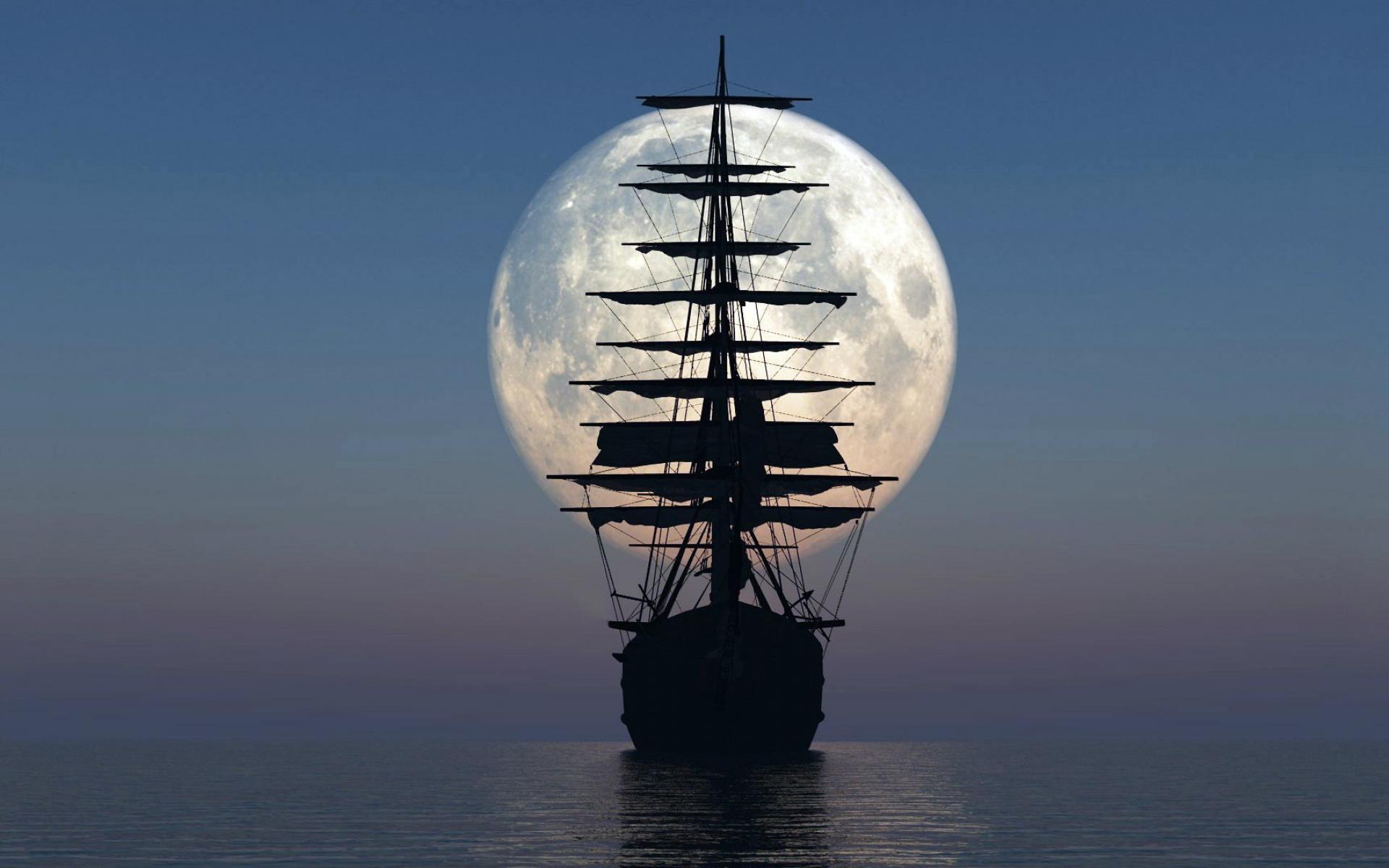 Wallpaper Silhouette of a sailboat in the background of the moon