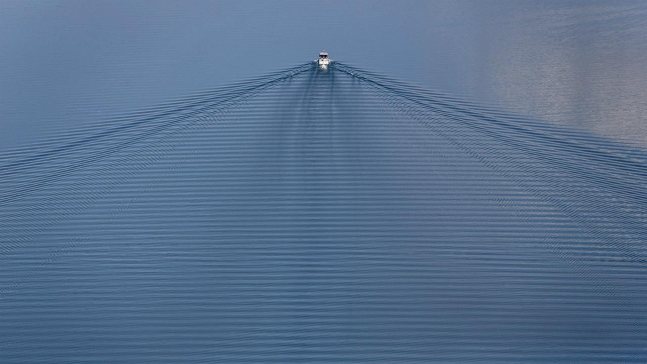 Wallpaper Ripples of water behind a boat