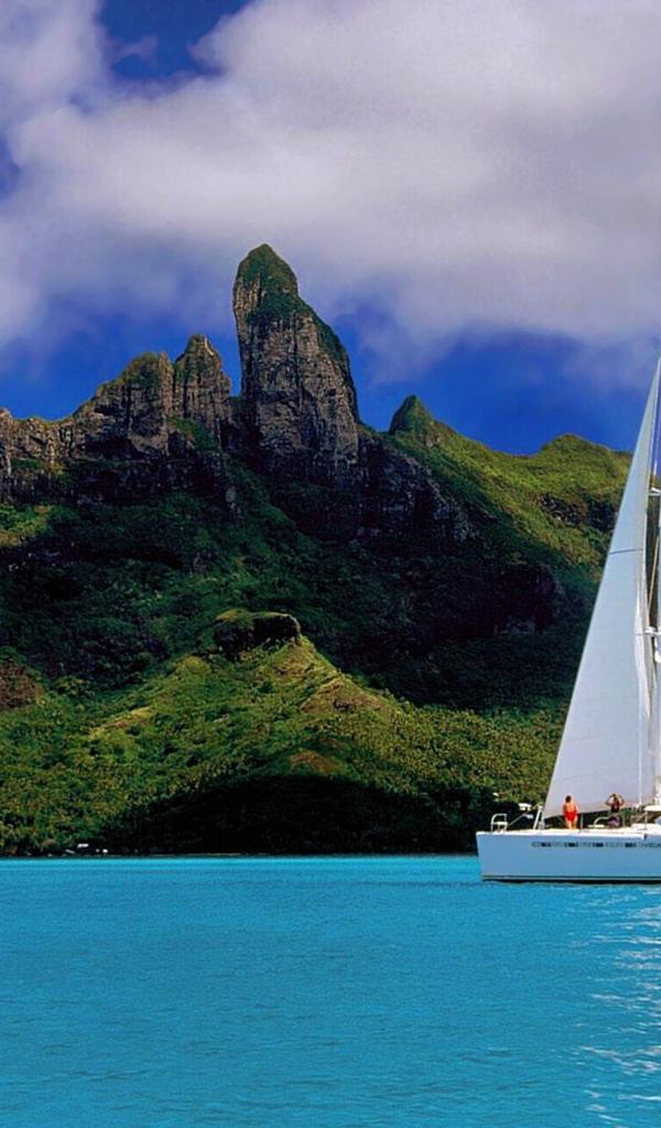Wallpaper Small sailboat off the island