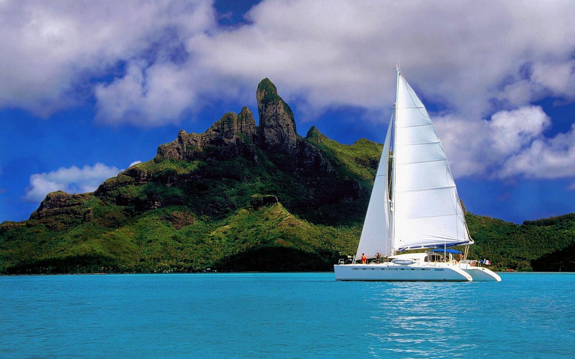 Wallpaper Small sailboat off the island