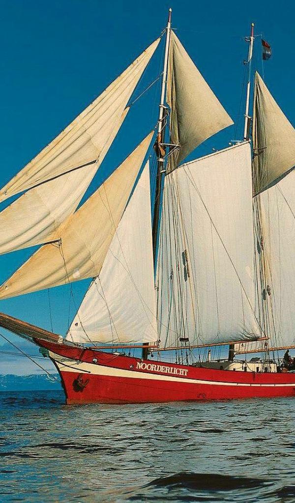 Wallpaper Red sailboat out to sea