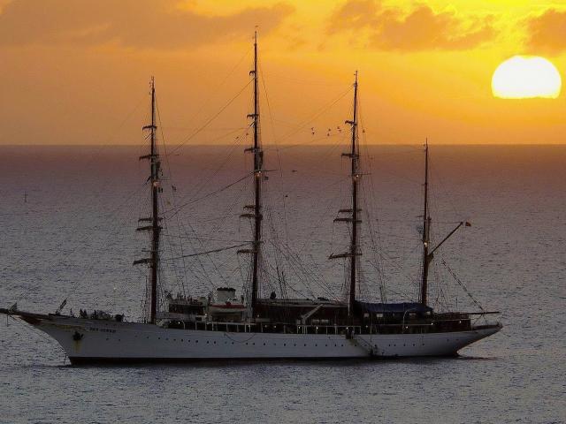 Wallpaper Ship at sunset