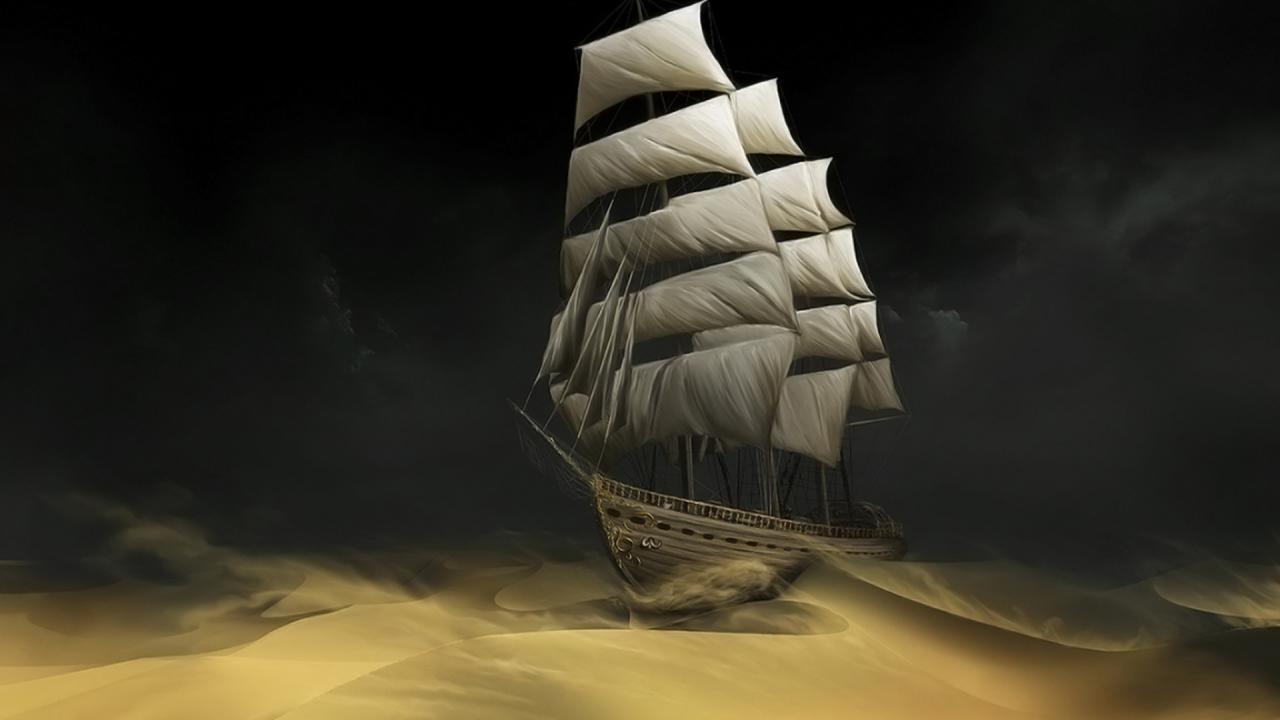 Wallpaper Sailing ship in the night sea