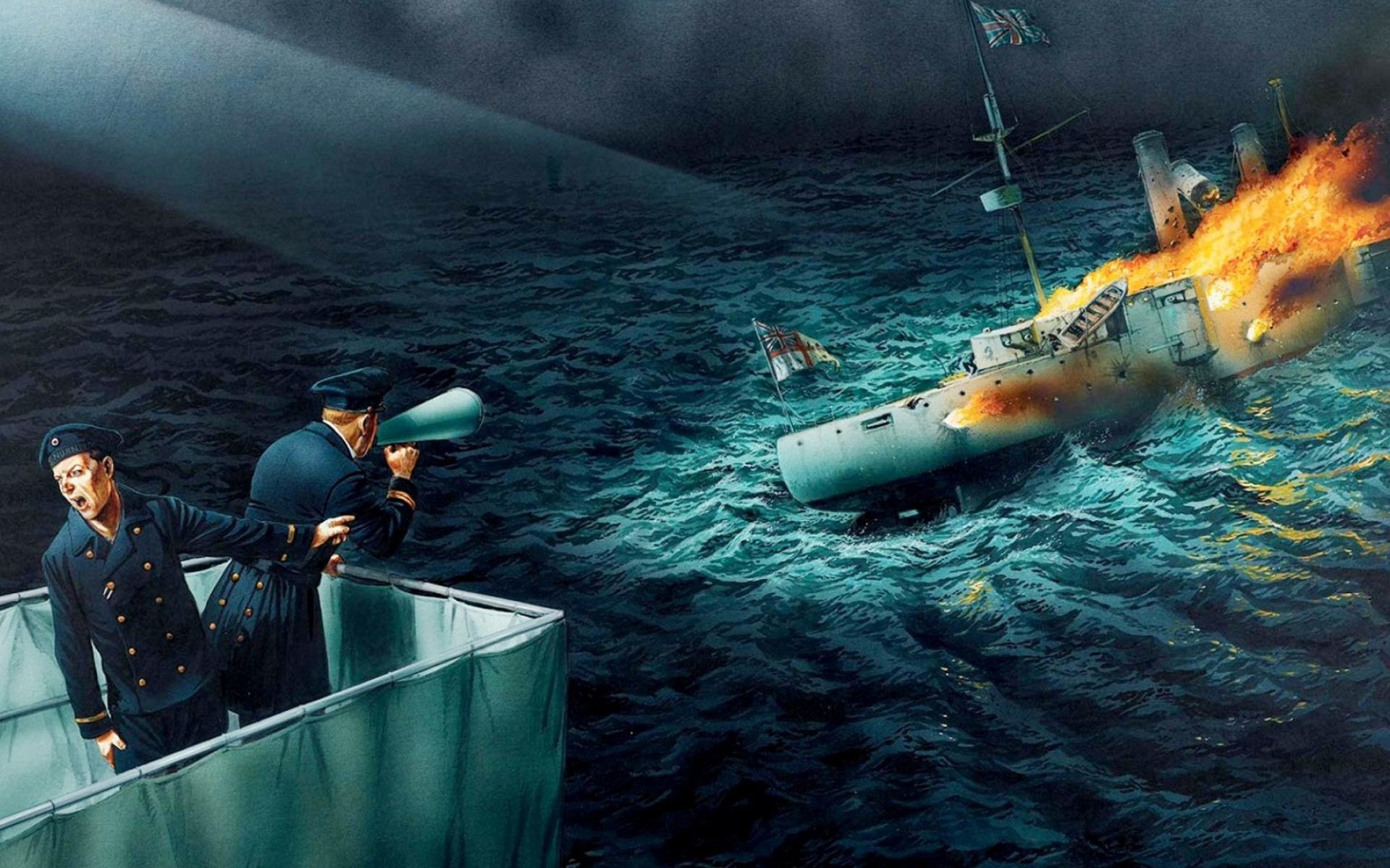 Wallpaper Sinking ship with flag