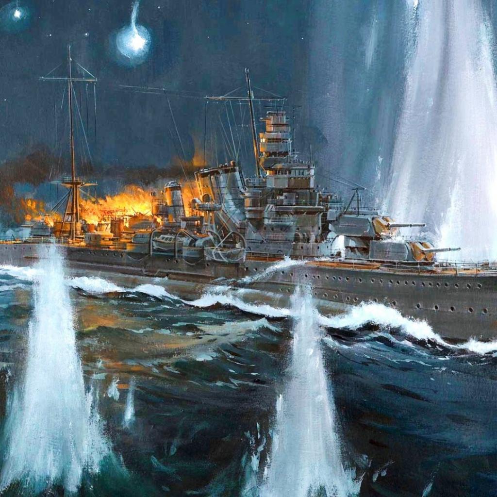Wallpaper Burning ship in the fountains
