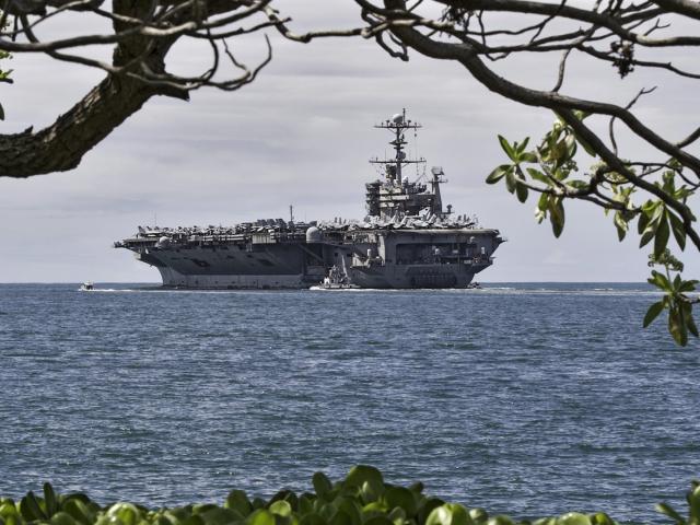 Wallpaper Aircraft carrier off the coast of
