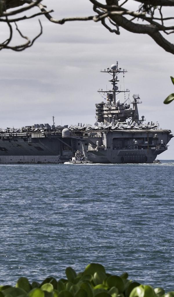 Wallpaper Aircraft carrier off the coast of