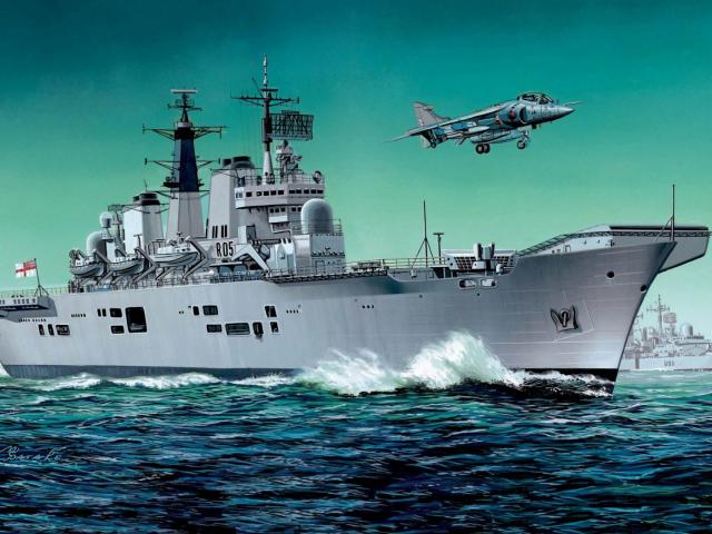Wallpaper Airplane over the British aircraft carrier