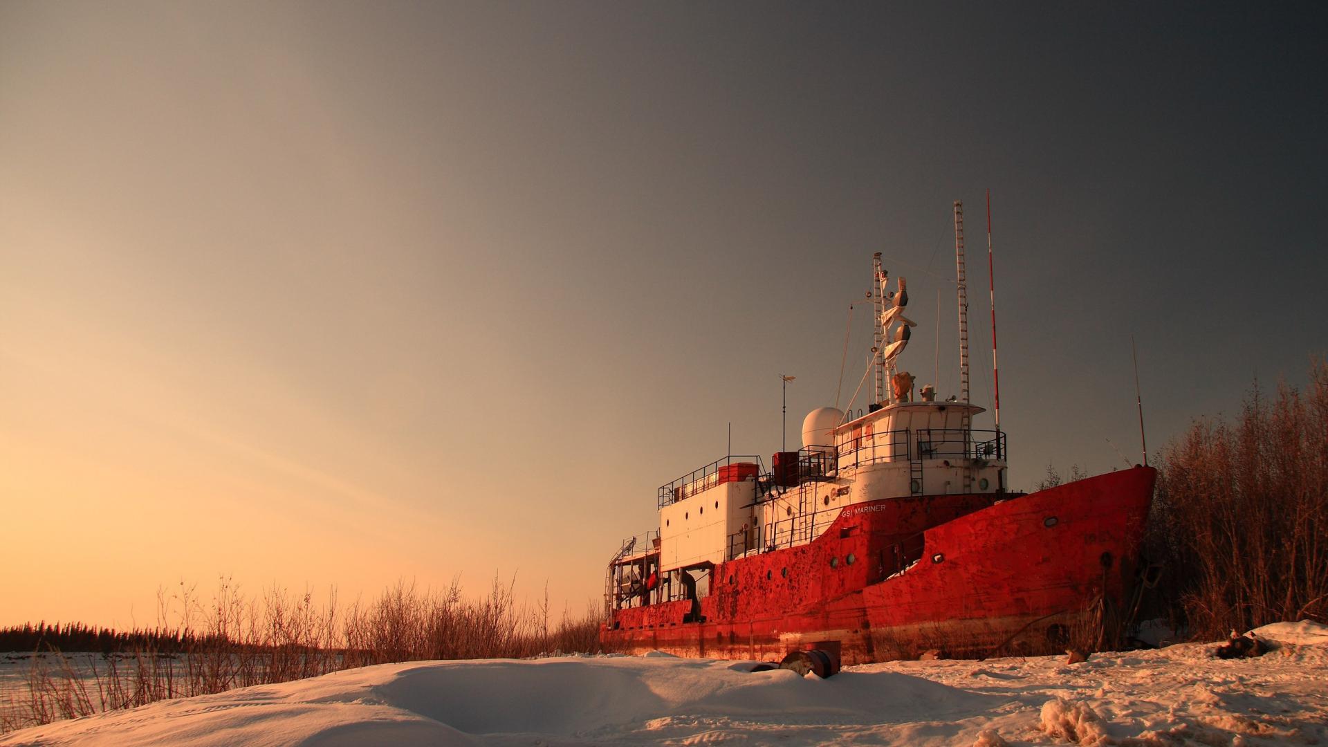 Wallpaper The ship for winter moorage