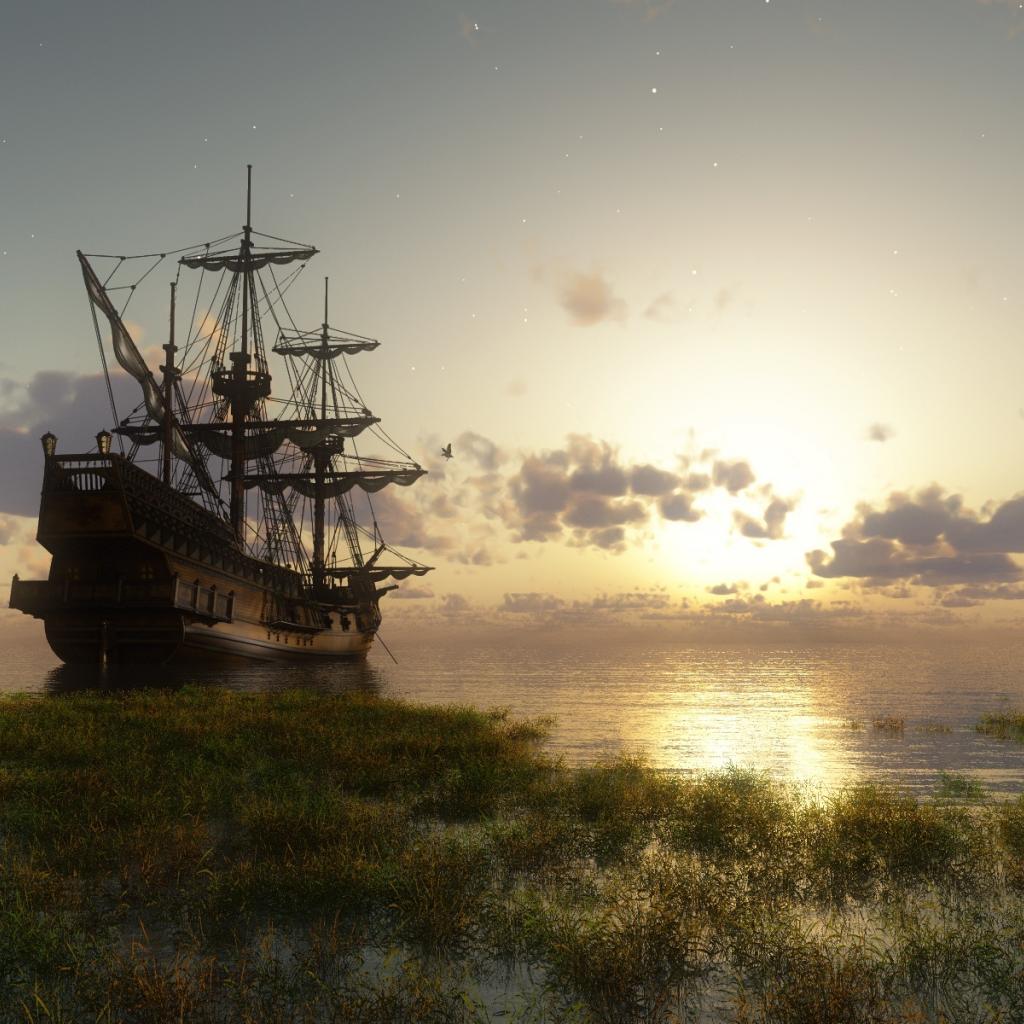 Wallpaper Ship at sunset