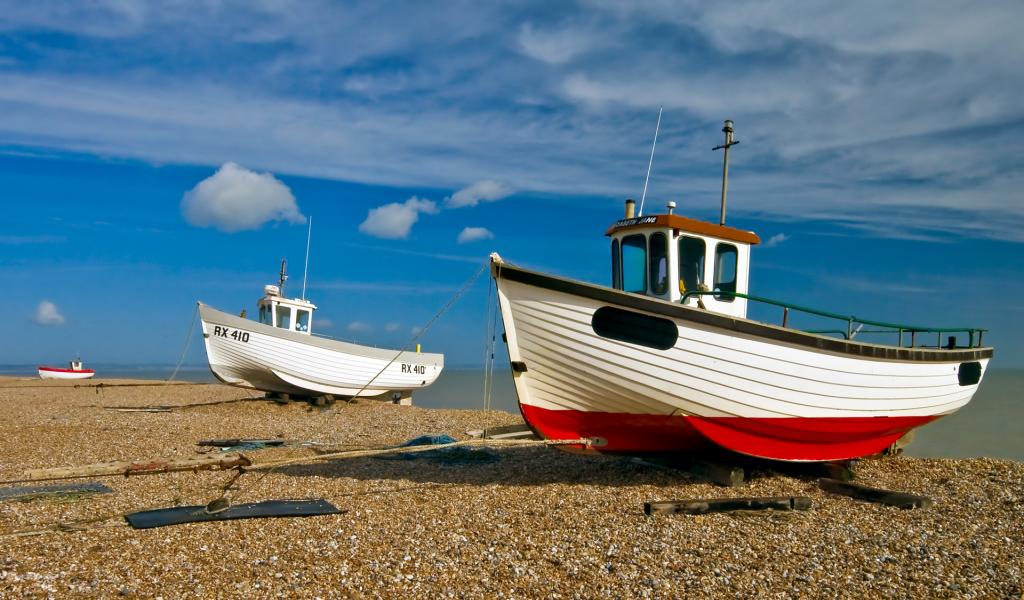 Wallpaper Boats on shore