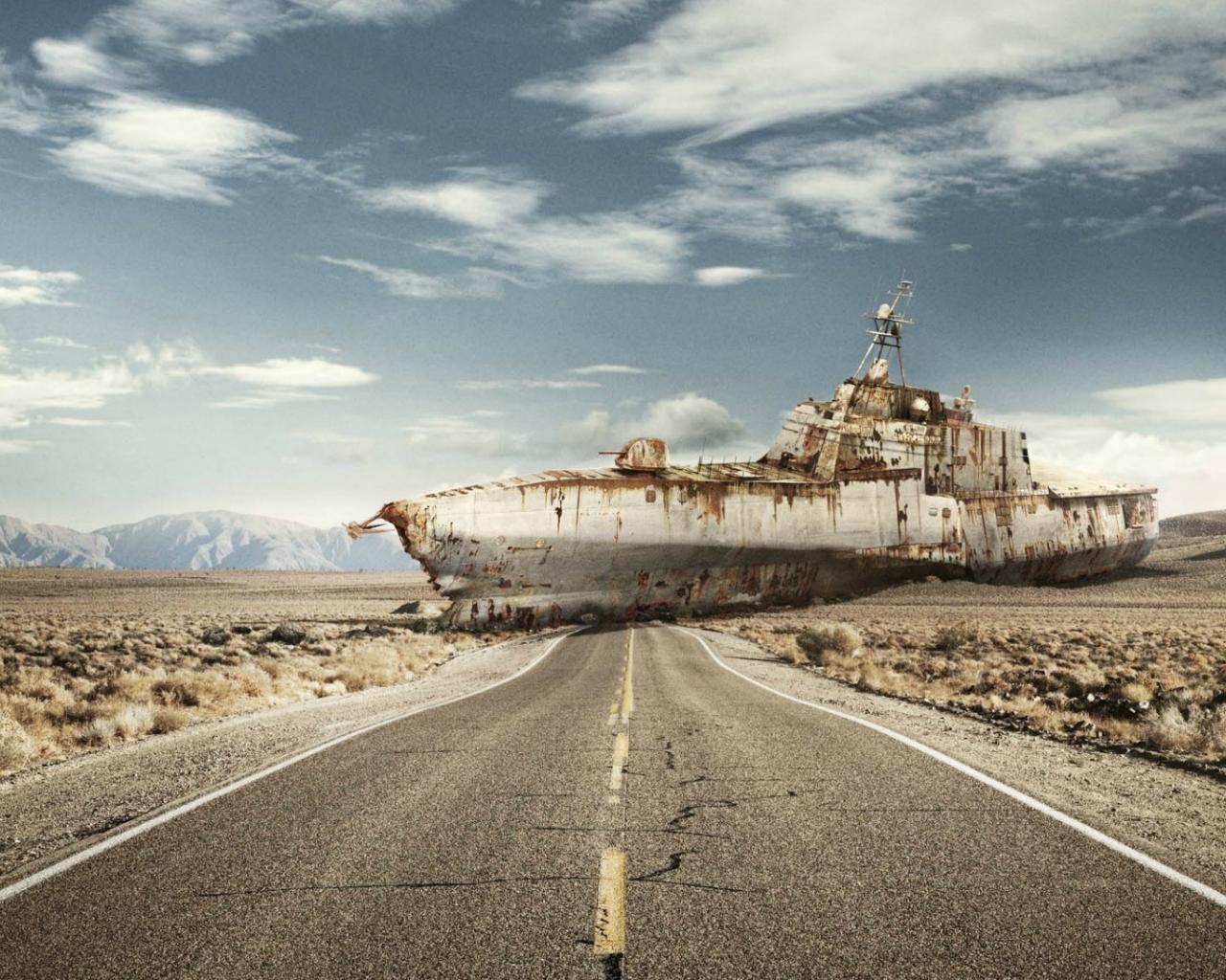 Wallpaper A submarine in the desert