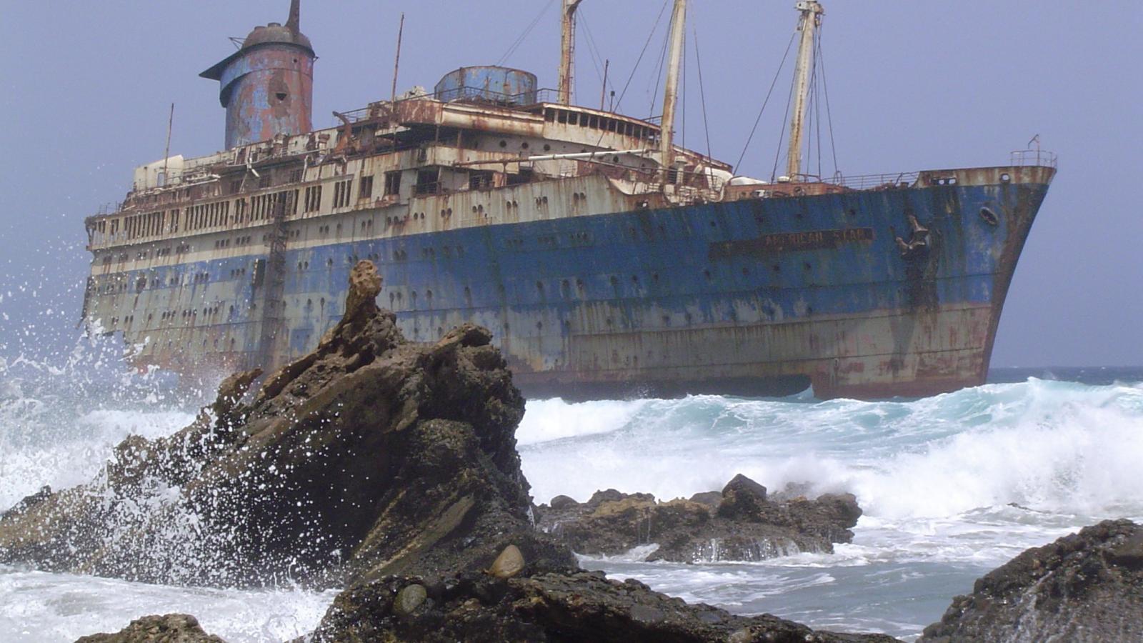Wallpaper Abandoned ship is on the rocks