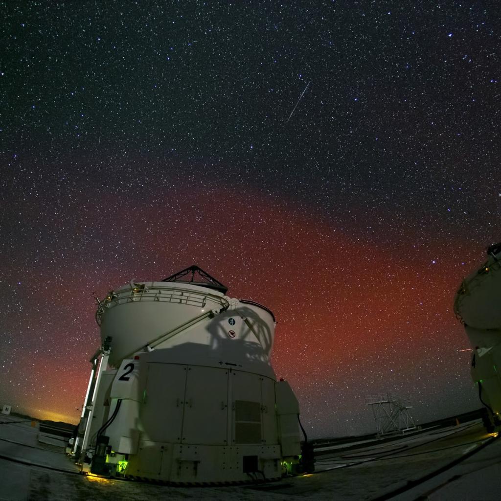 Wallpaper Meteor over the observatory
