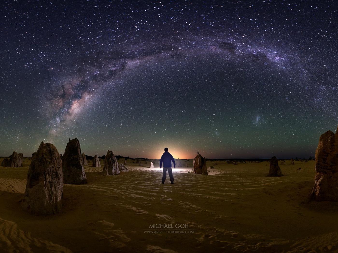 Wallpaper Man looking at the Milky Way