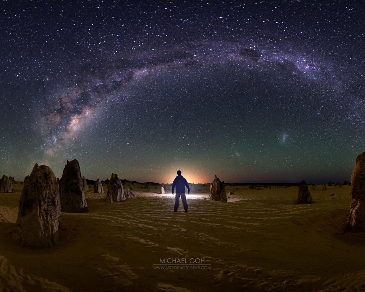 Wallpaper Man looking at the Milky Way