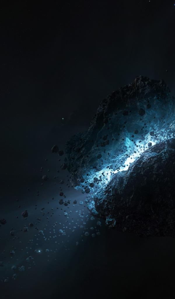 Wallpaper The light inside the black asteroid