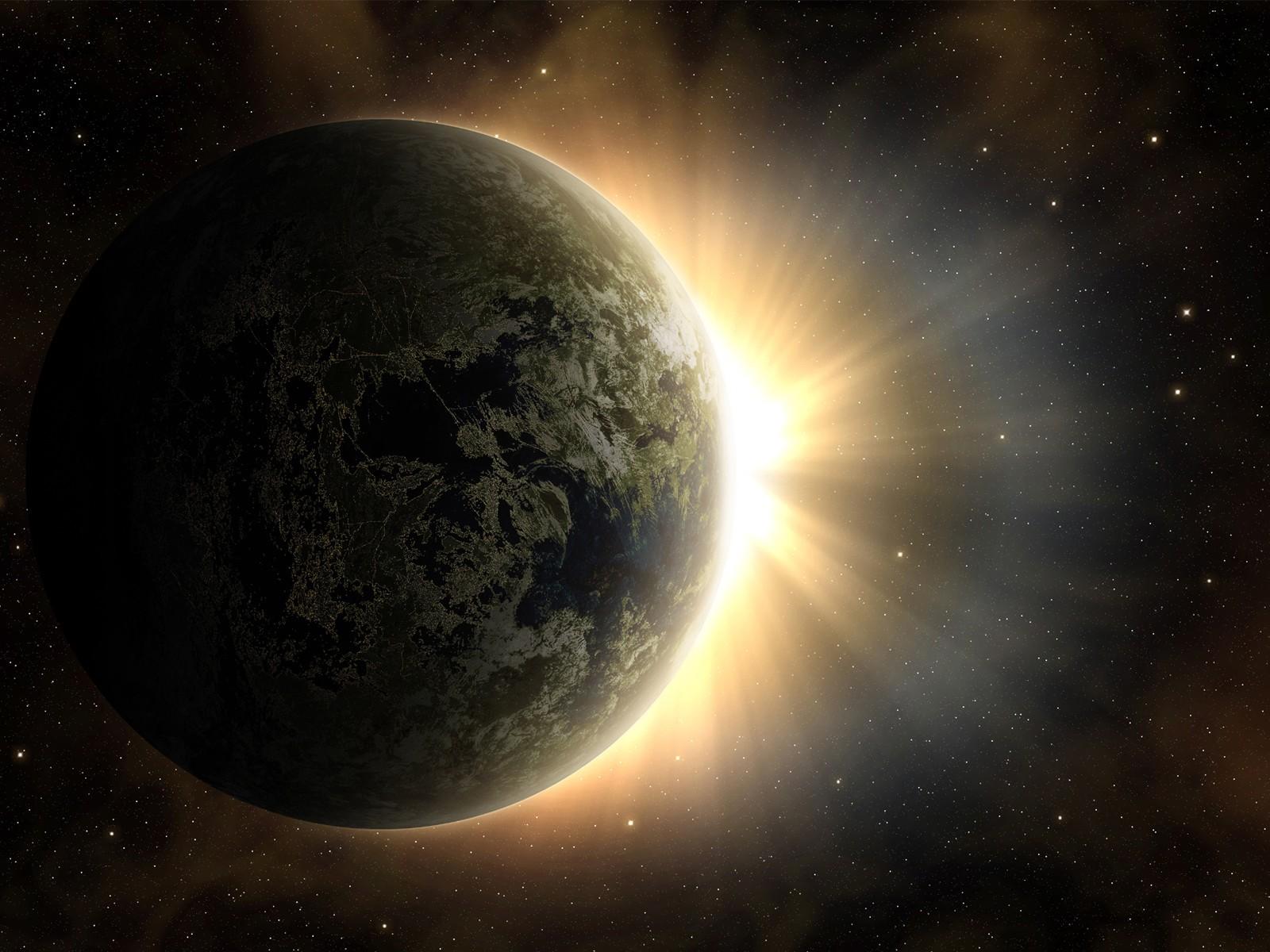 Wallpaper The bright lights behind the planet