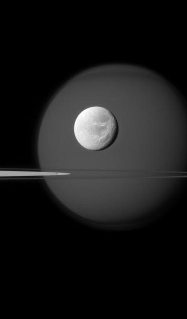 Wallpaper Saturn`s moon Titan and Pandora