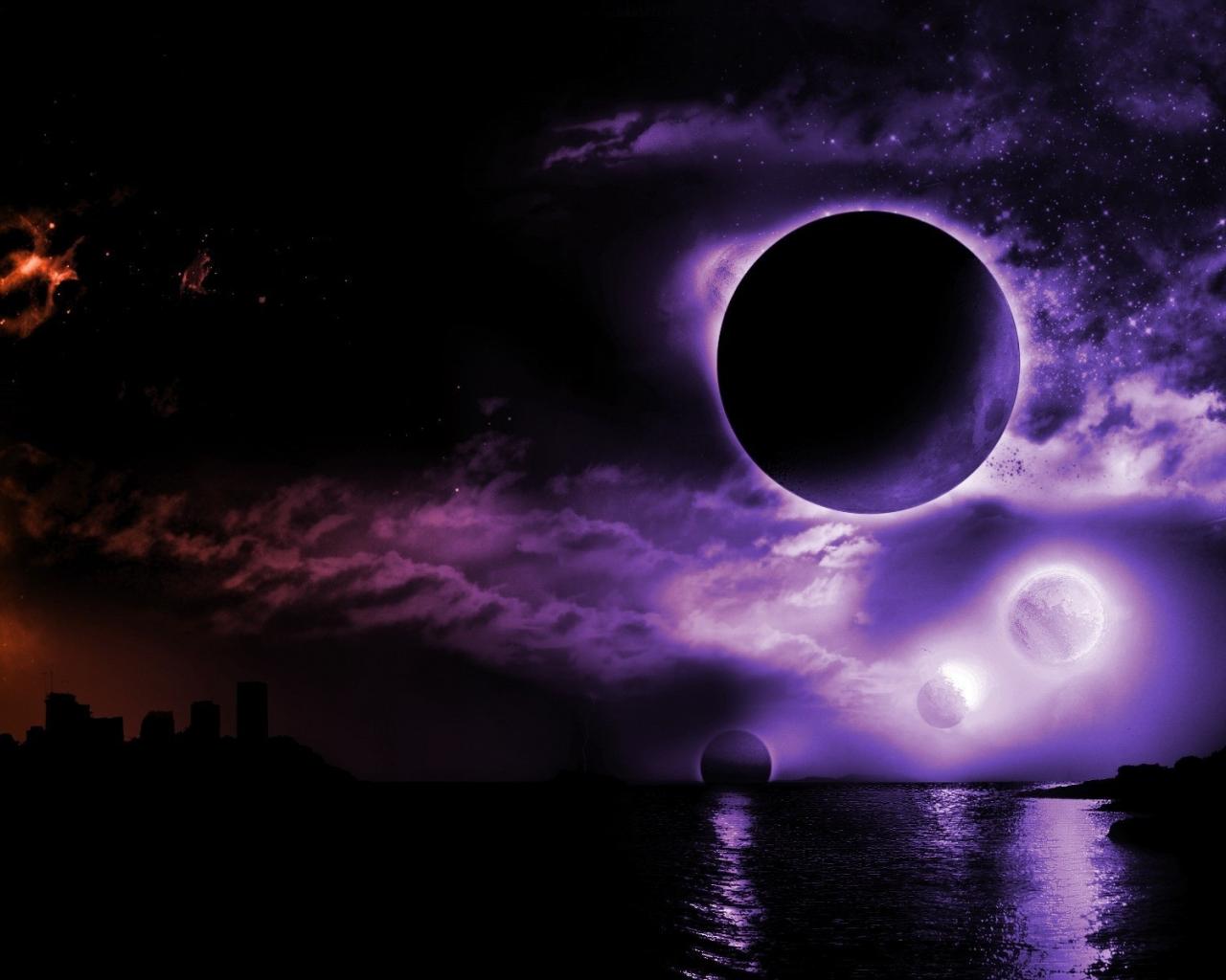Wallpaper Violet eclipse in the night