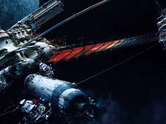Wallpaper Bridge between space stations in orbit