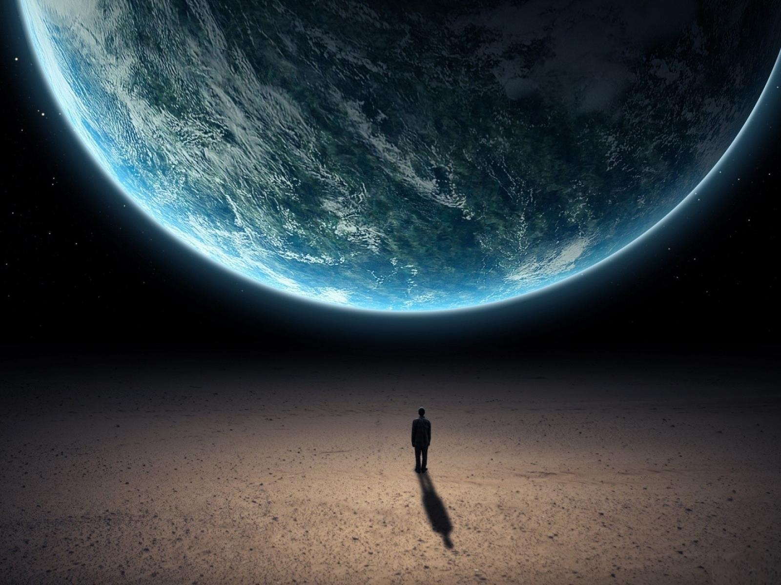Wallpaper A man stands in front of the planet