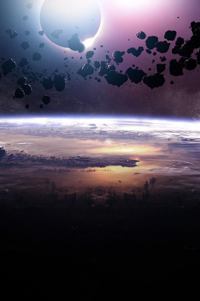 Wallpaper Group of asteroids on the planet