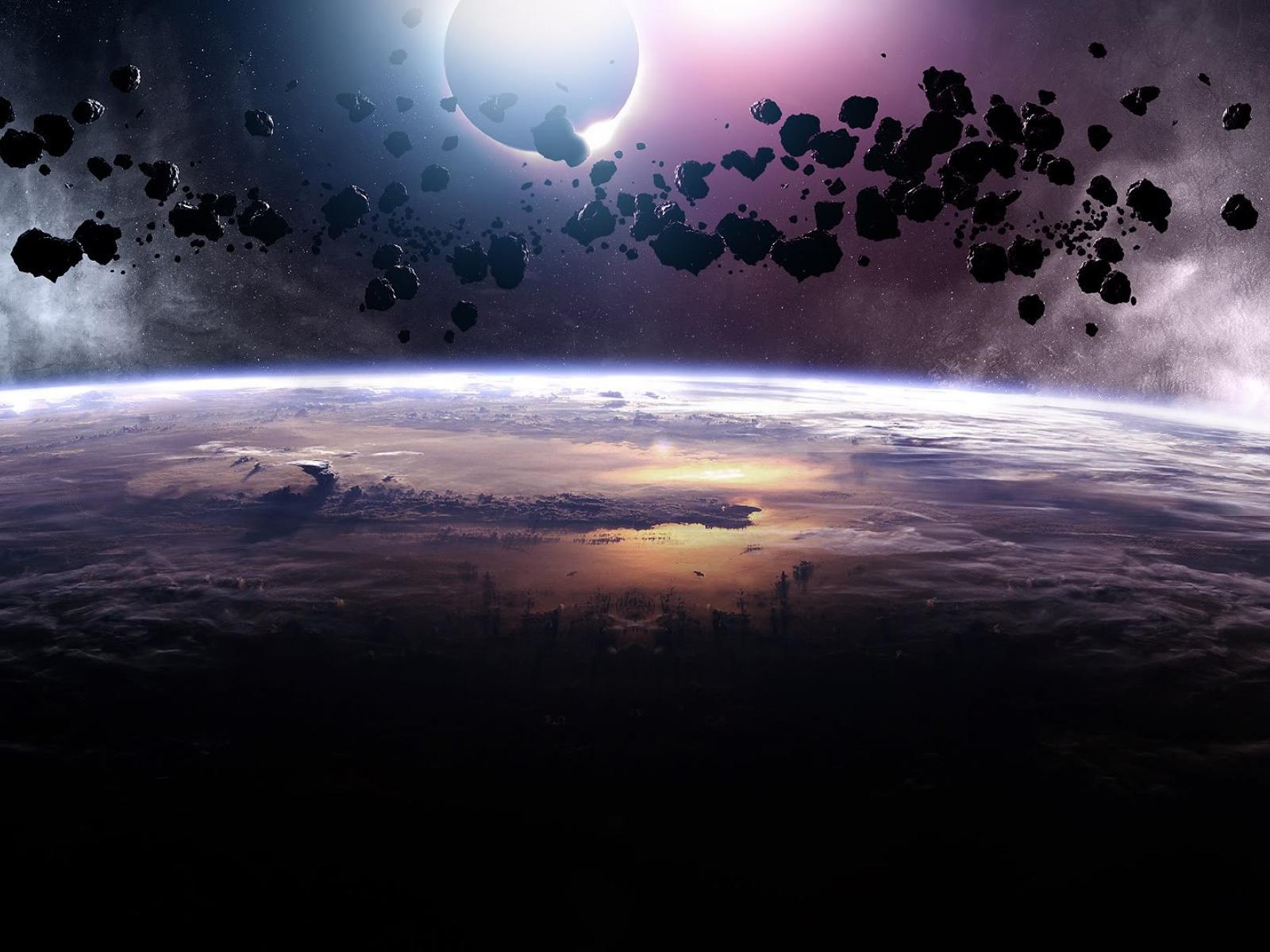 Wallpaper Group of asteroids on the planet