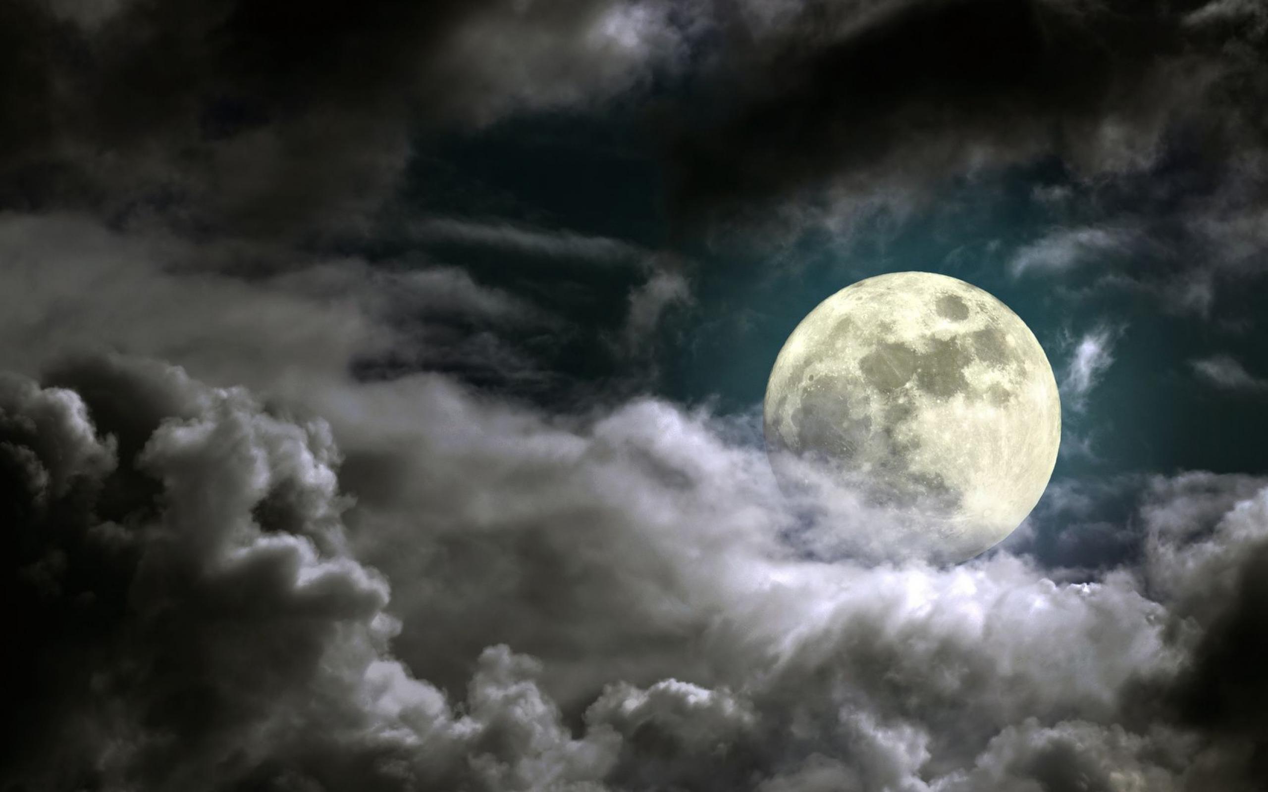 Wallpaper Moon among the night clouds
