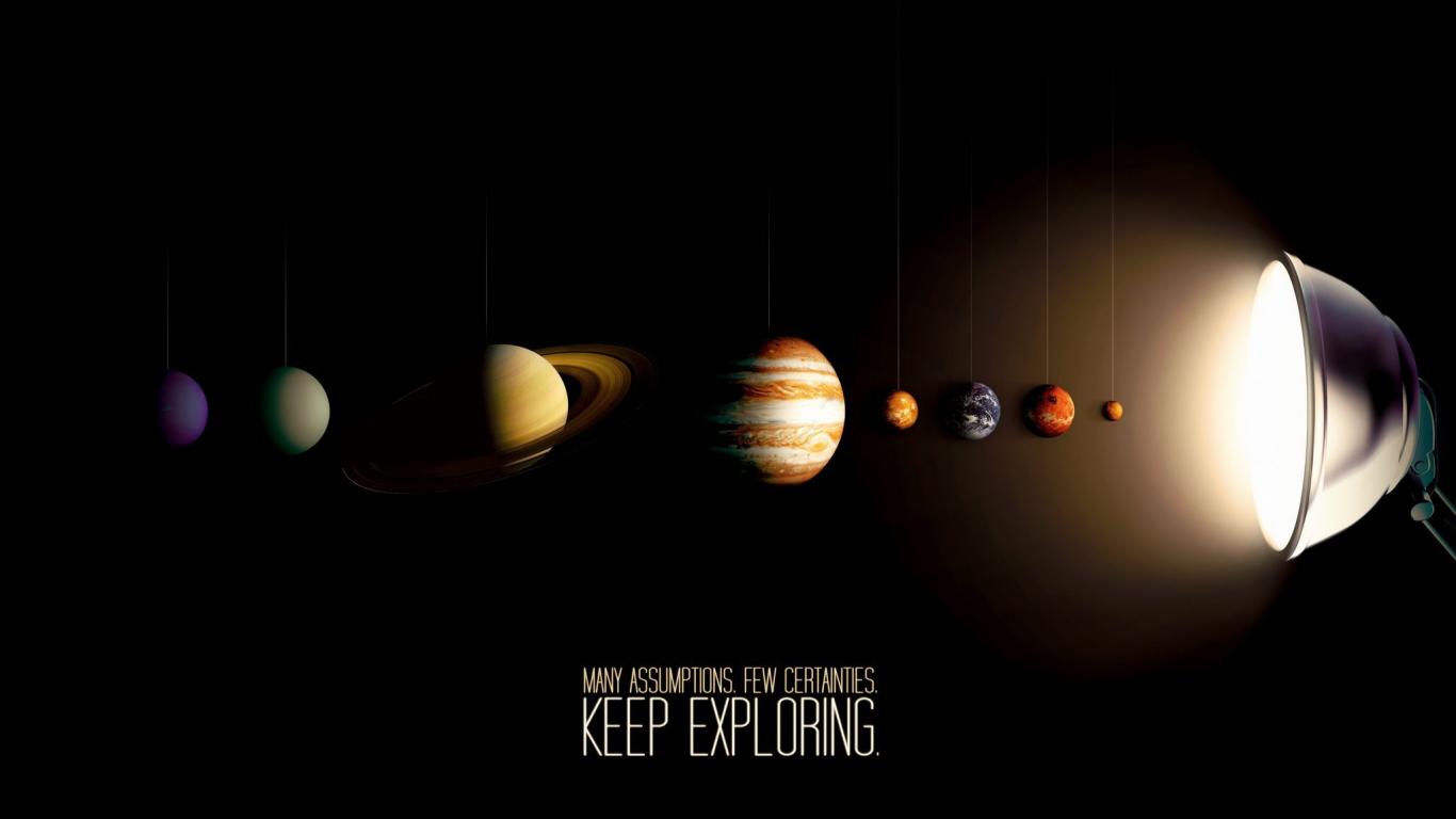Wallpaper Planets of the solar system under the light bulb