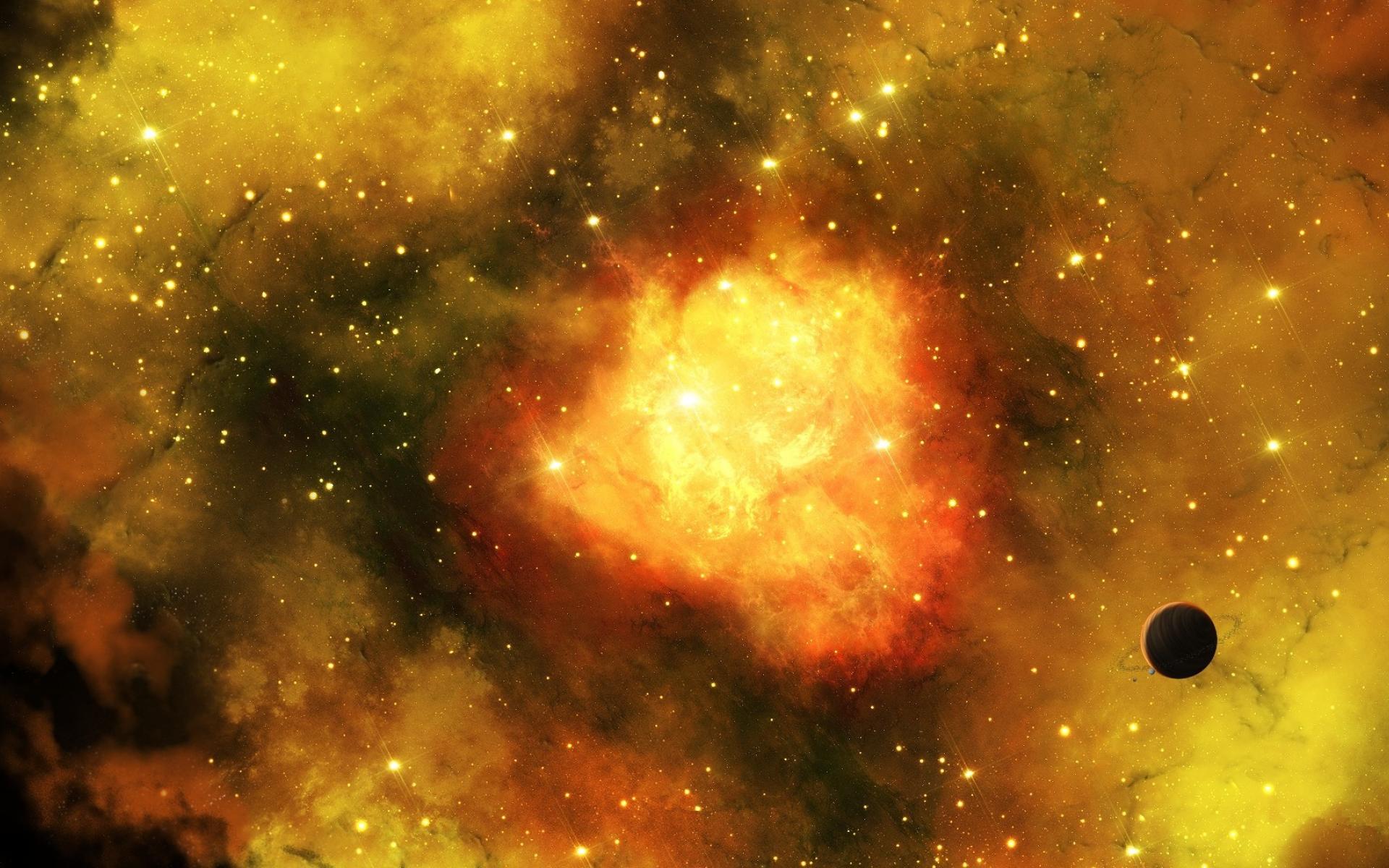 Wallpaper The planet on the background of the nebula