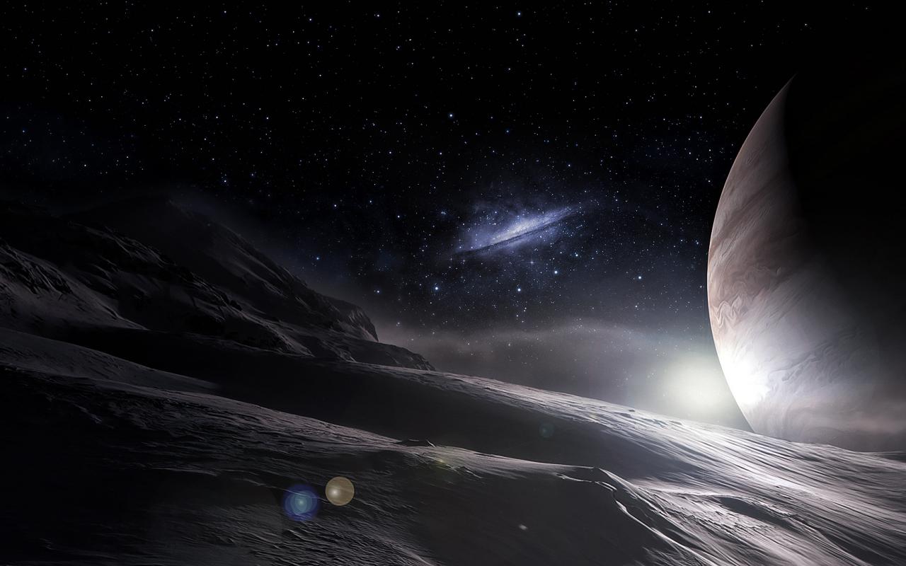 Wallpaper The surface of the planet and the star sky