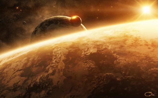 Wallpaper The surface of the planet and the sun