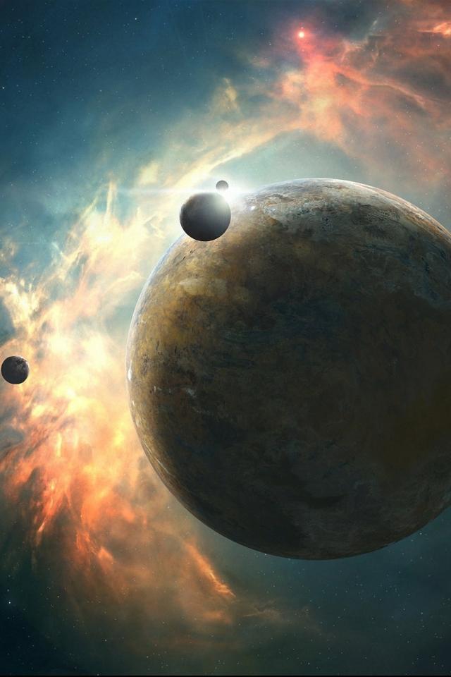 Wallpaper The planet on the background of the nebula