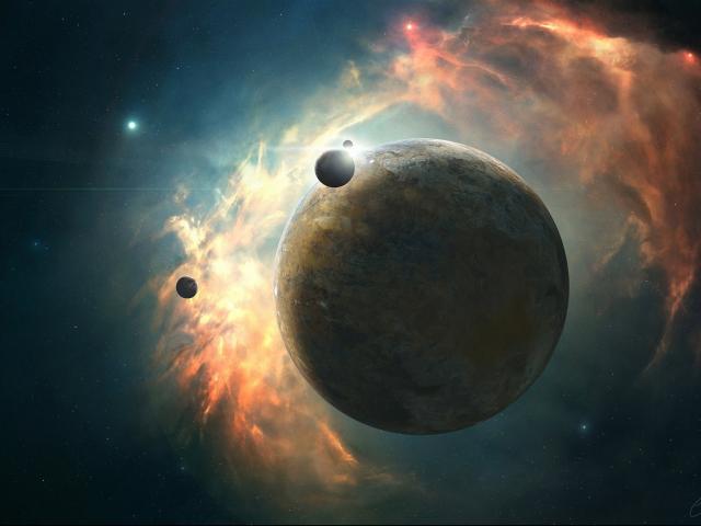 Wallpaper The planet on the background of the nebula