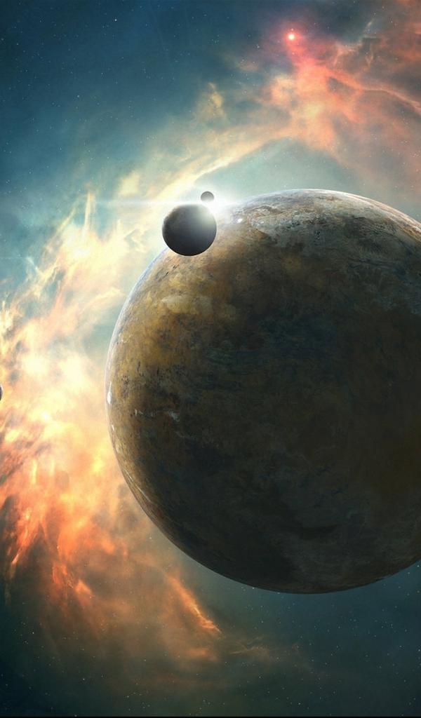 Wallpaper The planet on the background of the nebula