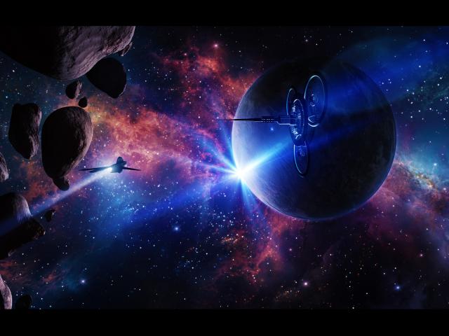 Wallpaper Spaceships among asteroids