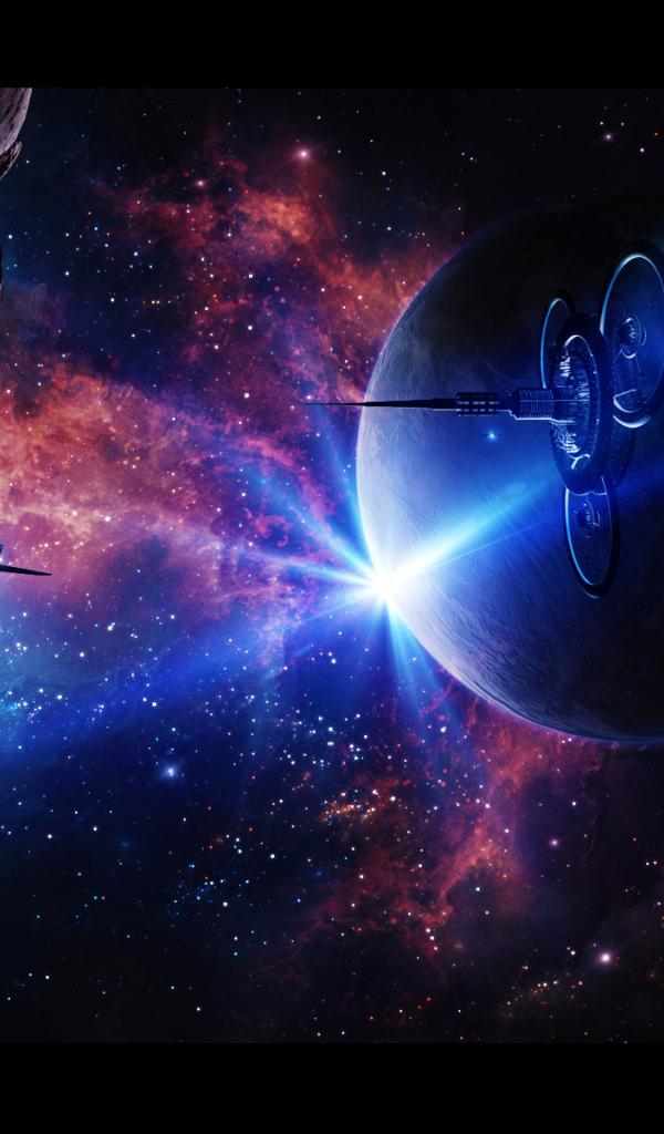 Wallpaper Spaceships among asteroids