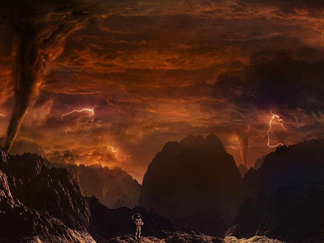 Wallpaper Astronaut on a fiery planet