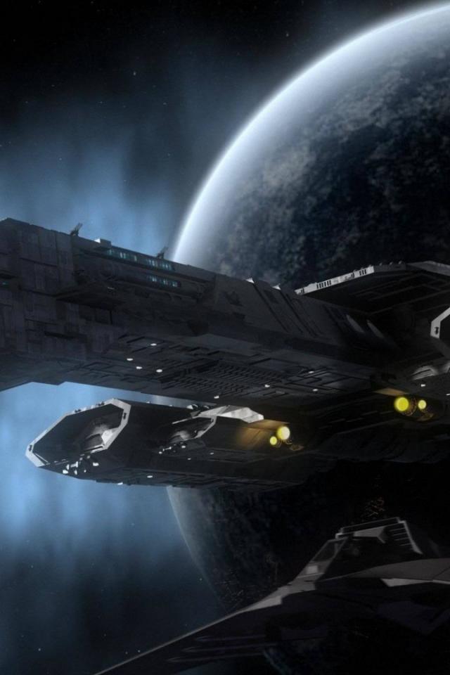 Wallpaper The ship on a background of a planet