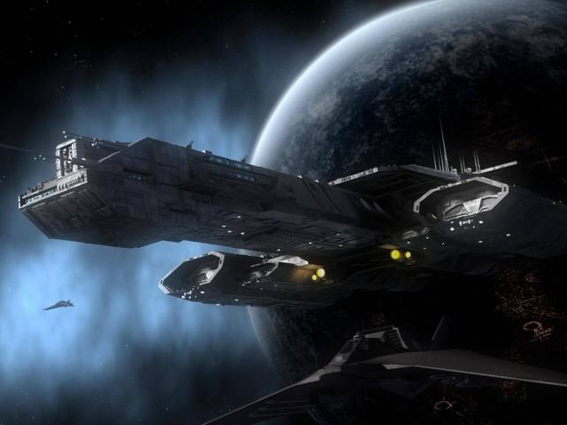 Wallpaper The ship on a background of a planet