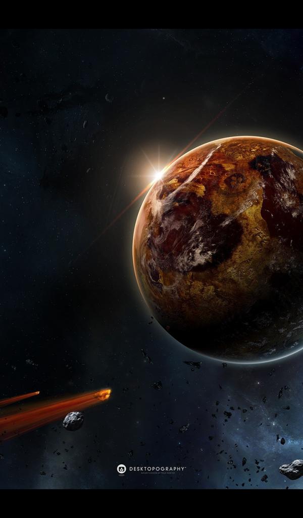 Wallpaper Space ship and meteorites