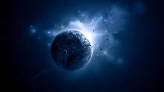 Wallpaper View on the planet with an asteroid