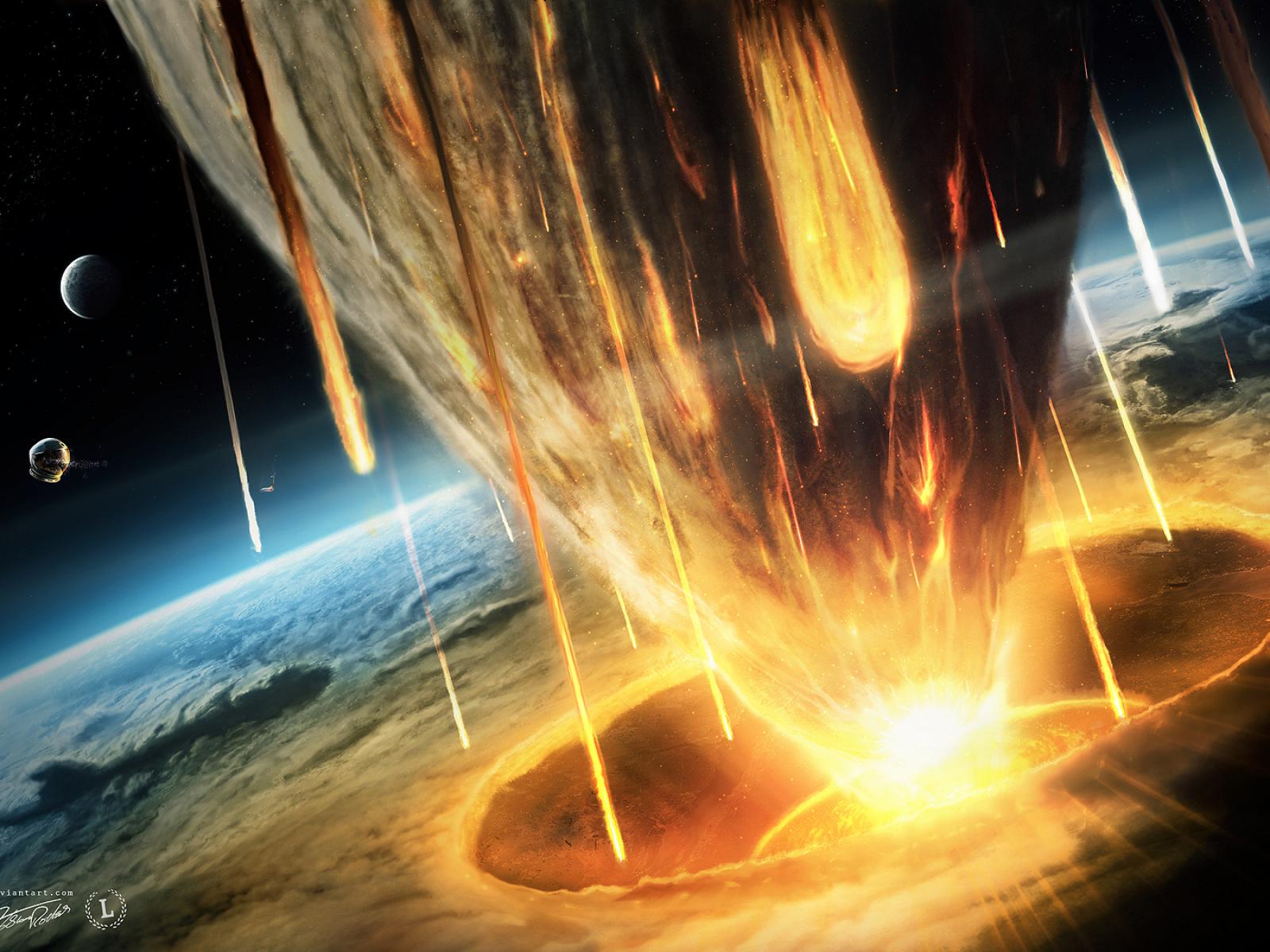 Wallpaper The fall of the comet on the planet