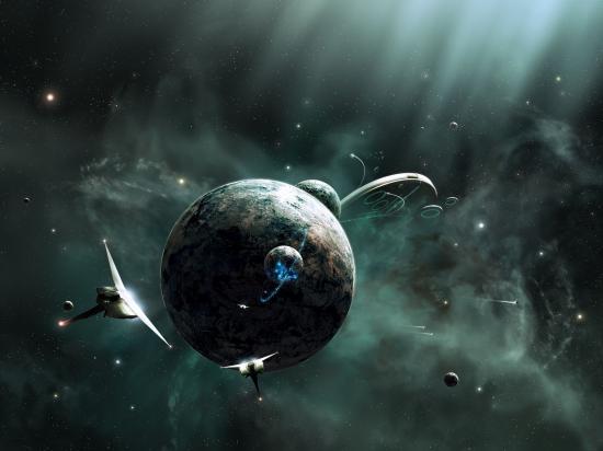 Wallpaper The spacecraft down to the planet