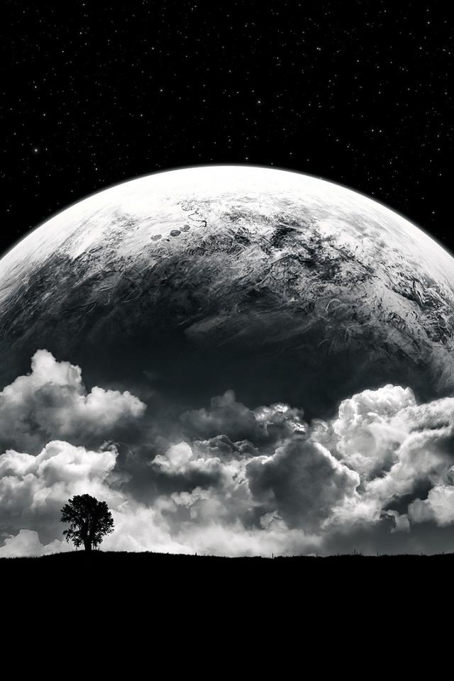 Wallpaper Trees, Moon, Planets, Stars, melancholy