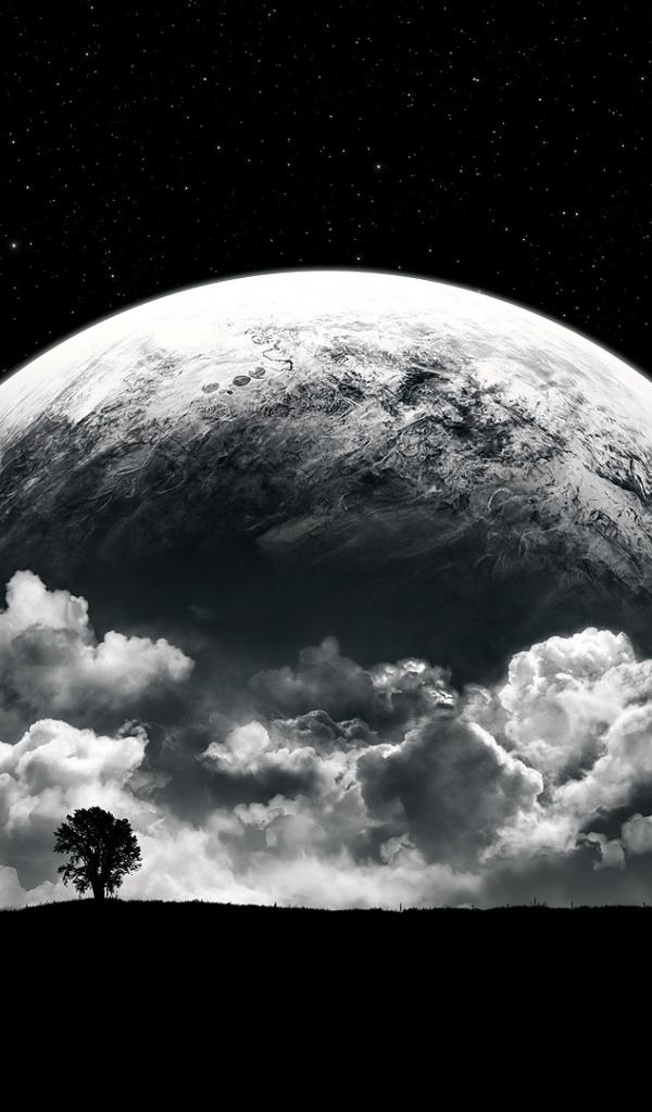 Wallpaper Trees, Moon, Planets, Stars, melancholy