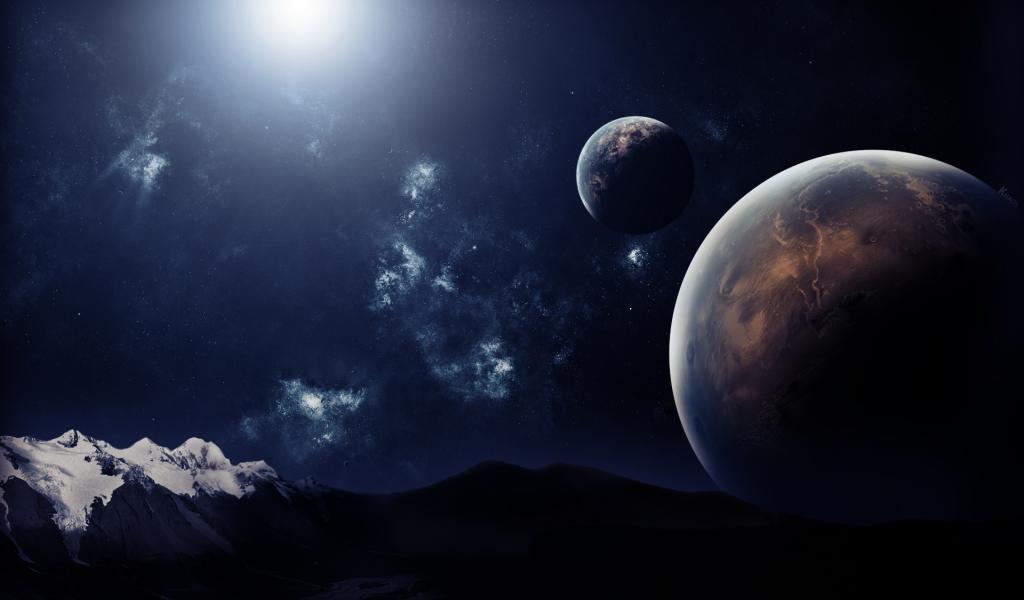 Wallpaper Planet over the mountains